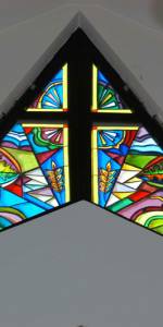 Vitraj Sl. Božjega o. Ante Antića. Po nacrtu Ivice Šiška, akademskog slikara i grafičara. Izradila ga tvrtka “Stakloart” iz Zagreba. Vitraj je dar obitelji Nevenke i Stjepana Marodi, naših župljana.